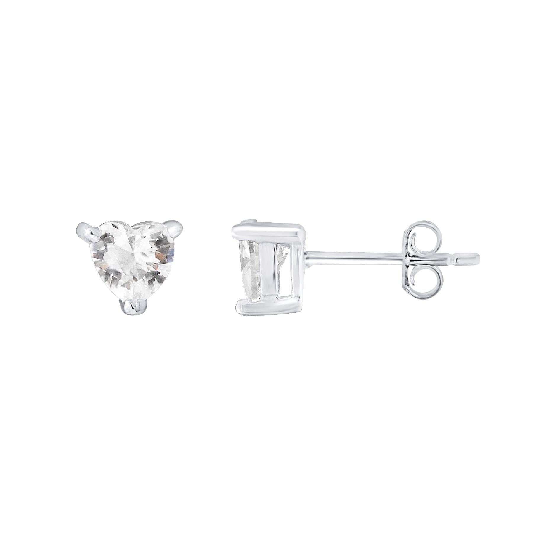 Boucles d'Oreilles motif "COEUR" - Argent 925 Millièmes - SERTI 3 GRIFFES - Oxydes de Zyrconium BLANCS - Système Poussettes - Livré avec Certificat d'Authenticité et de Garantie internationale -